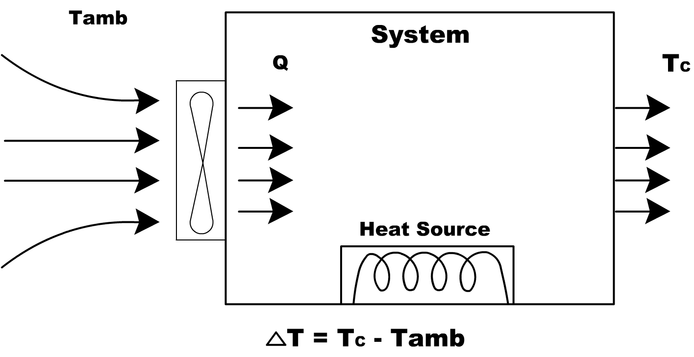 在選用風(fēng)扇之前,首先對(duì)系統(tǒng)的散熱風(fēng)量預(yù)估,利用熱力學(xué)原理分析系統(tǒng)的散熱,得到如下公式: